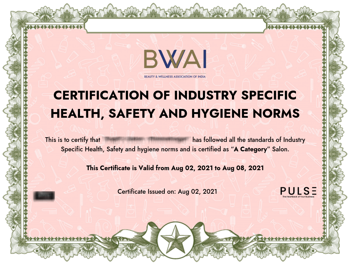 The validity of the certificates will be one week and the same will be visible on the salon’s Pulse login.