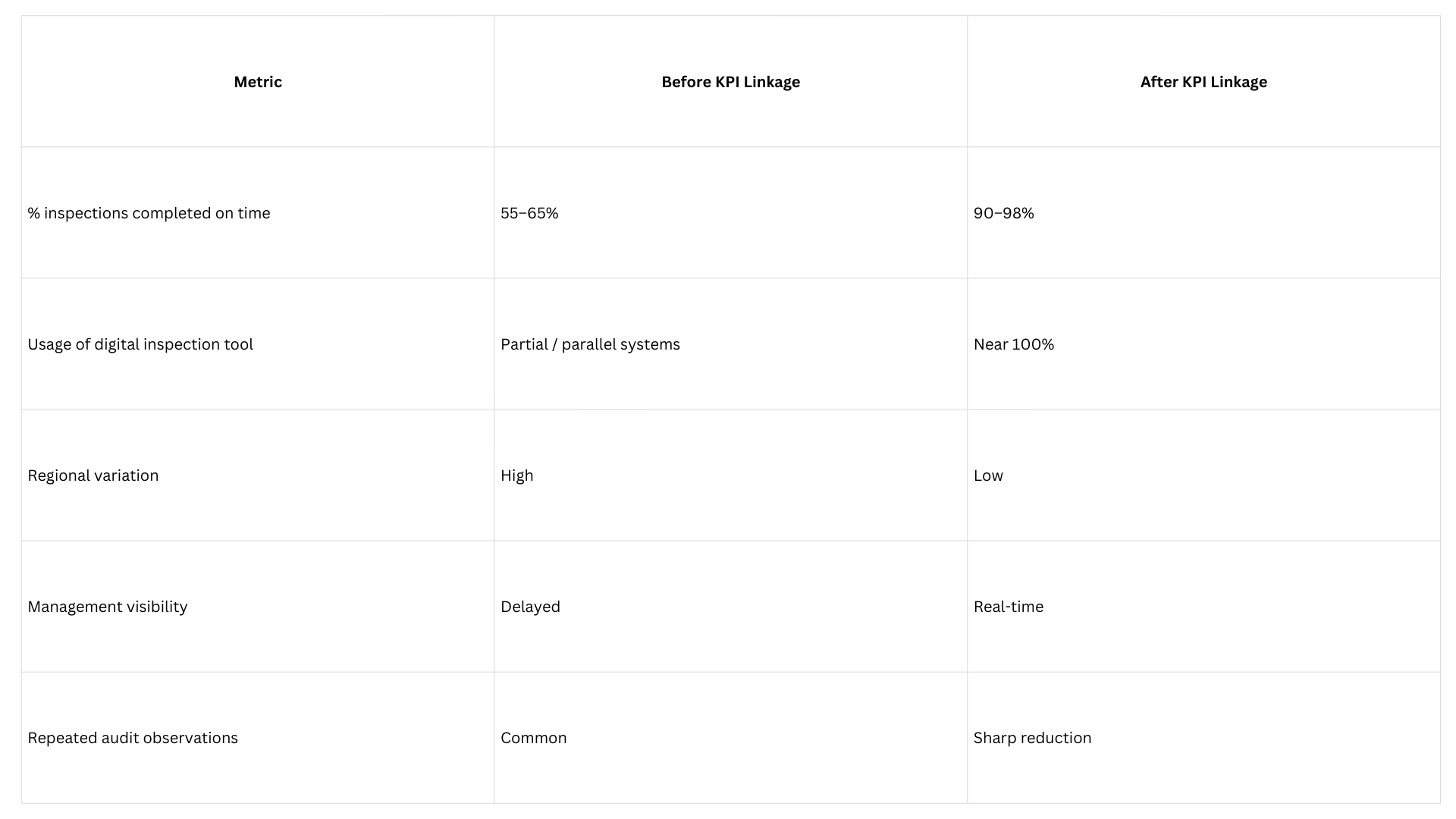Linking inspection adoption to KPIs is not about punishment.