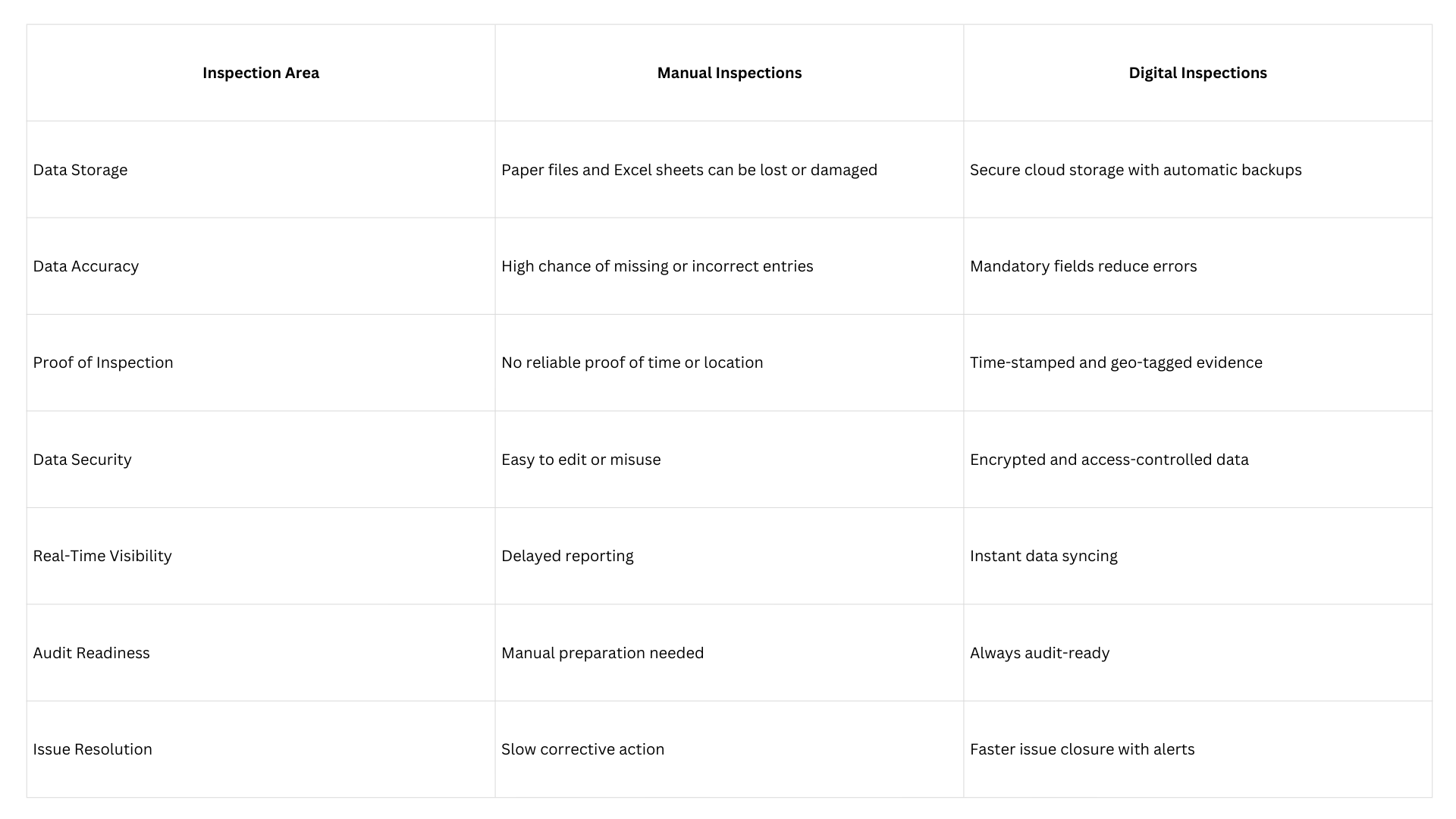 In 2026, digital inspections have become a safer and more reliable alternative. They help businesses maintain control, reduce errors, and protect important inspection data.